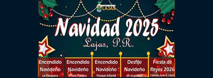 Navidad en Lajas 2025. La Navidad en Lajas, incluye celebraciones tradicionales como el Encendido Navideño en la Plaza Pública y la Parranda Navideña que recorre la zona.